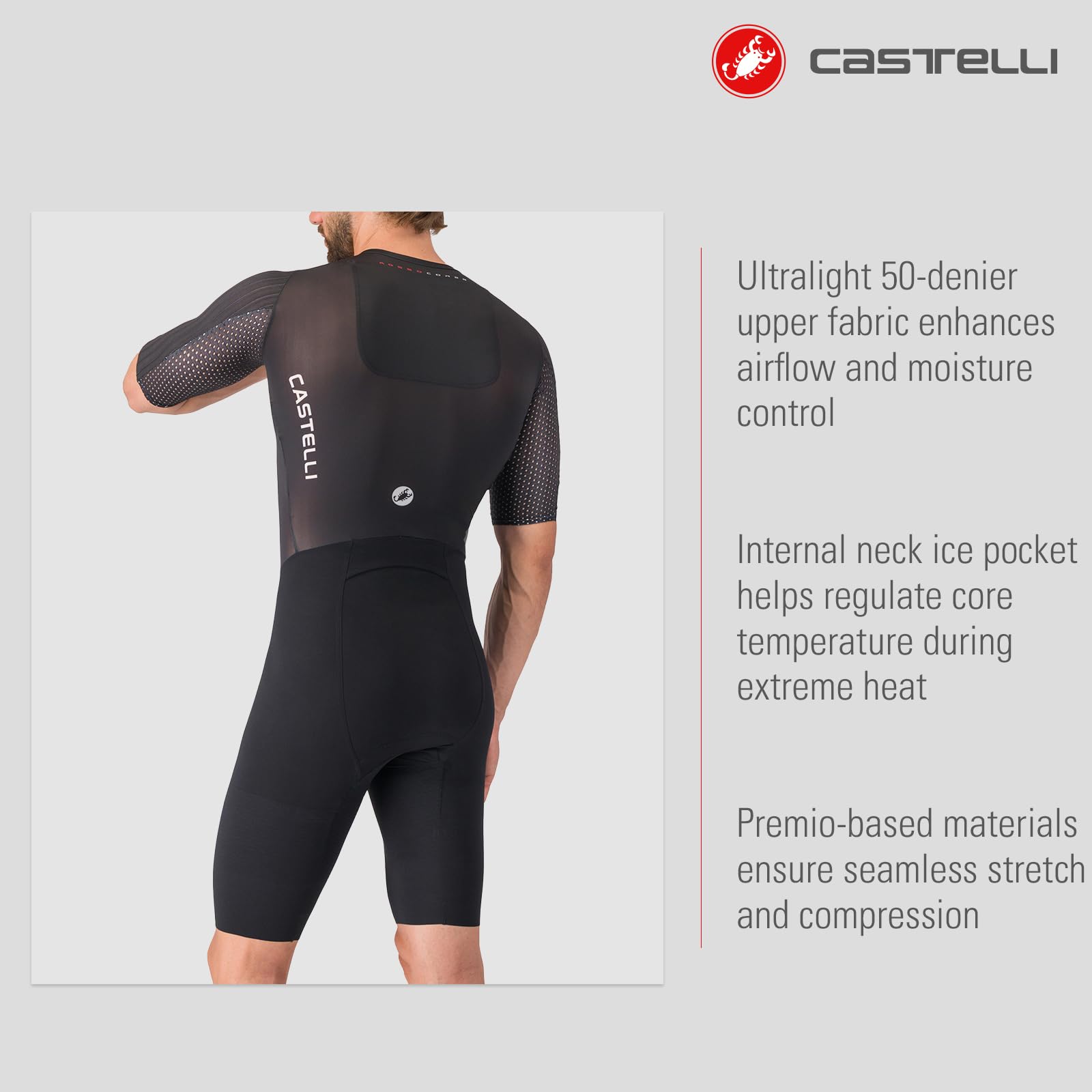 - COOLING & ENDURANCE COMFORT: Ultralight 50-denier upper fabric enhances airflow and moisture control, while the internal neck ice pocket helps regulate core temperature during extreme heat. Premio-based materials ensure seamless stretch and compression.