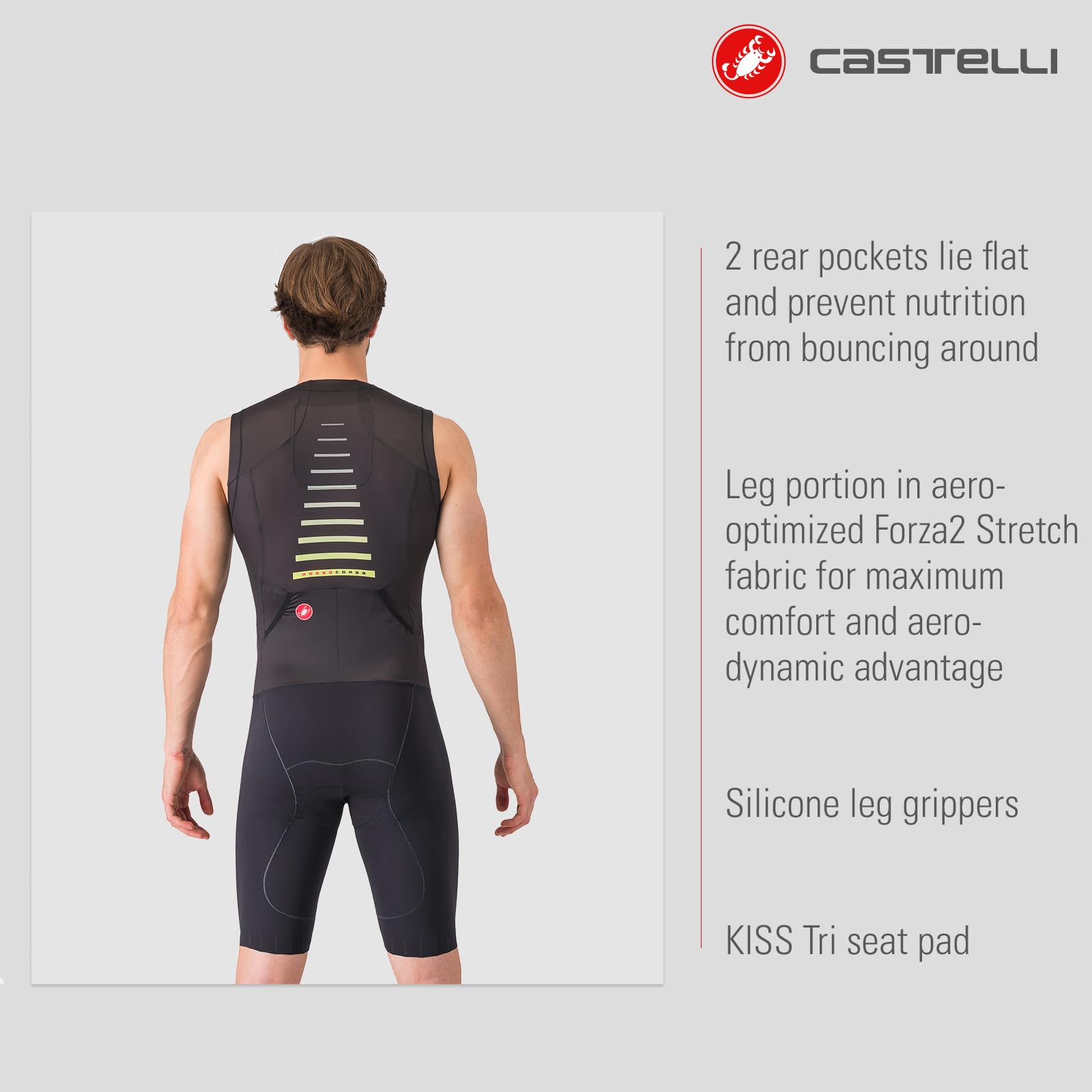 CASTELLI Men’s Sanremo 3 Suit Sleeveless, Cycling Race Swim Bike Run, Aerodynamic Triathlon Suit with Tri Seat Pad—